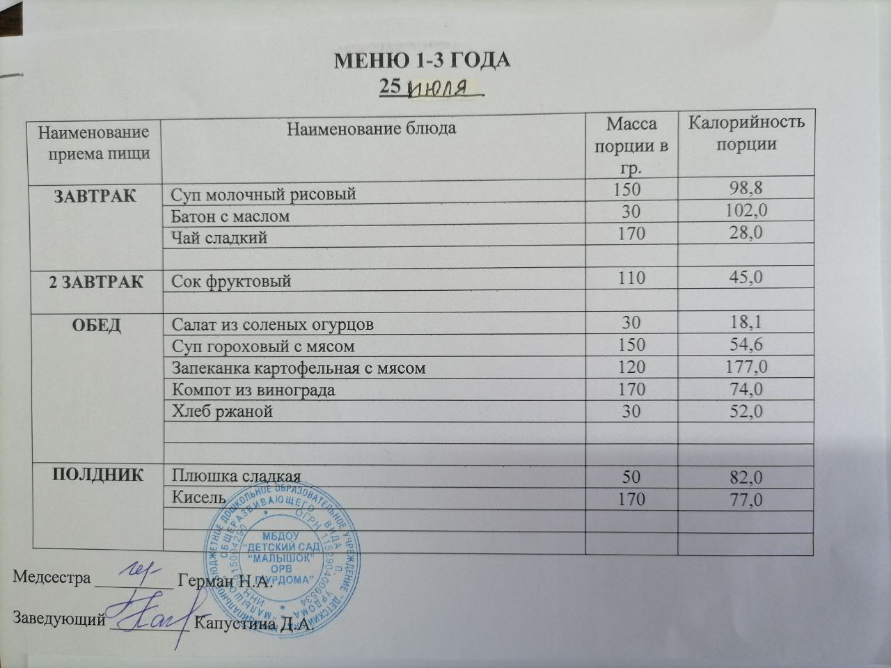 Ежедневное меню