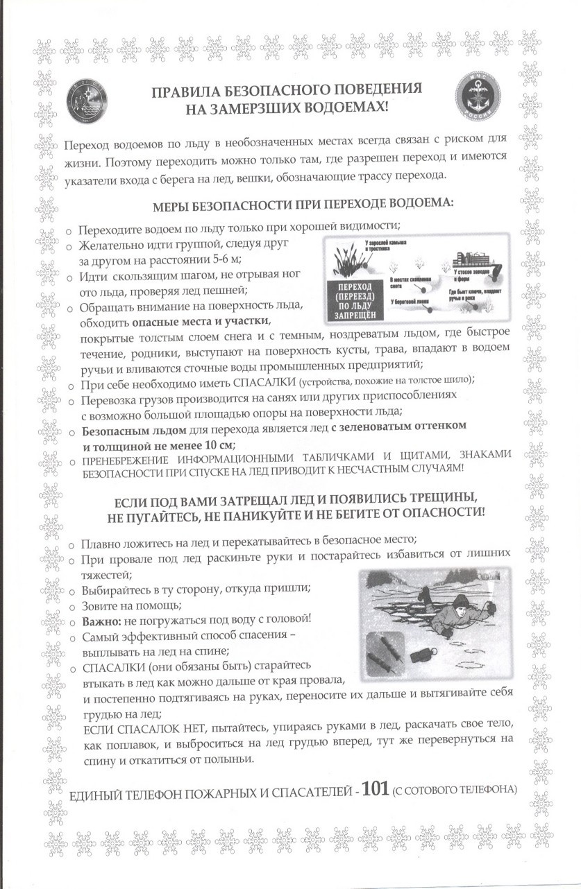 ПАМЯТКА ПО ПОВЕДЕНИЮ НА ВОДЕ В ЗИМНИЙ ПЕРИОД