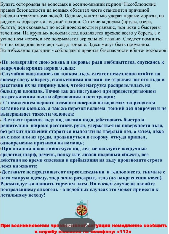 Информационный материал на тему "Обеспечение безопасности жизни людей на водных объектах в осенне-зимний период"
